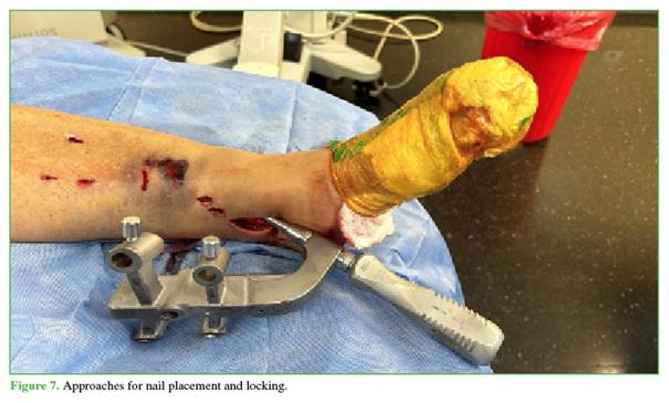 malleolus fracture. The fracture must be reduced prior to nail insertion, as