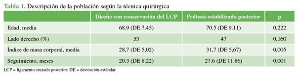 conservación del ligamento cruzado posterior y 84 con prótesis estabilizada
