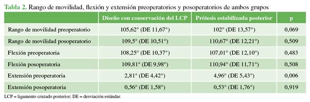110° ± 12° en el grupo con prótesis estabilizada posterior (p = 0,50). Después