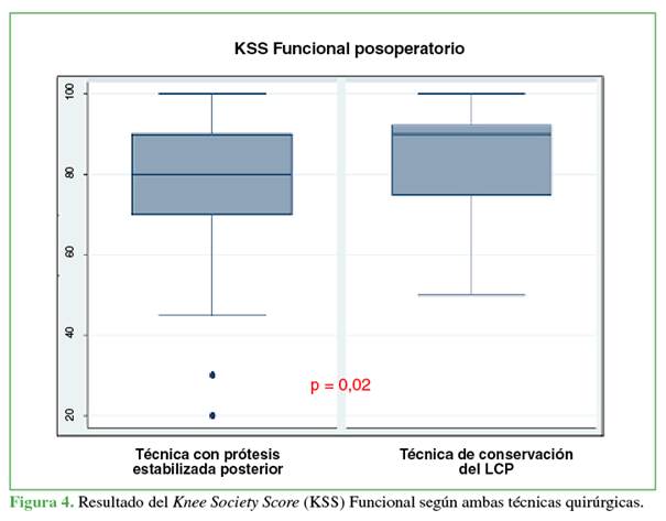 de la cirugía, no se hallaron diferencias entre ambos grupos, en el KSS (84,7 ±