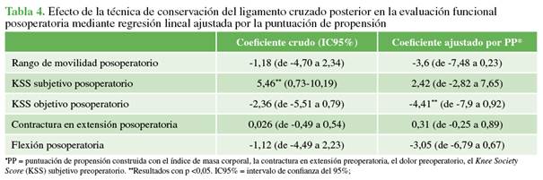 estabilizada posterior (PEP) vs. aquellos con conservación del LCP aún son