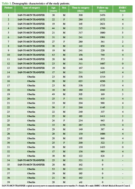 patients with BPI who underwent musculocutaneous nerve neurotization were