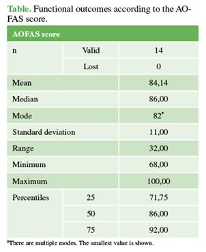 meses, el puntaje promedio de la AOFAS fue de 84,14. Hubo una infección