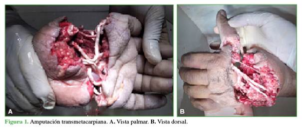 interóseos palmares estaban arrancados por tracción.