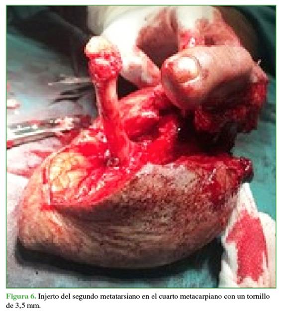 alargamiento del cuarto rayo usando el segundo metatarsiano como injerto óseo