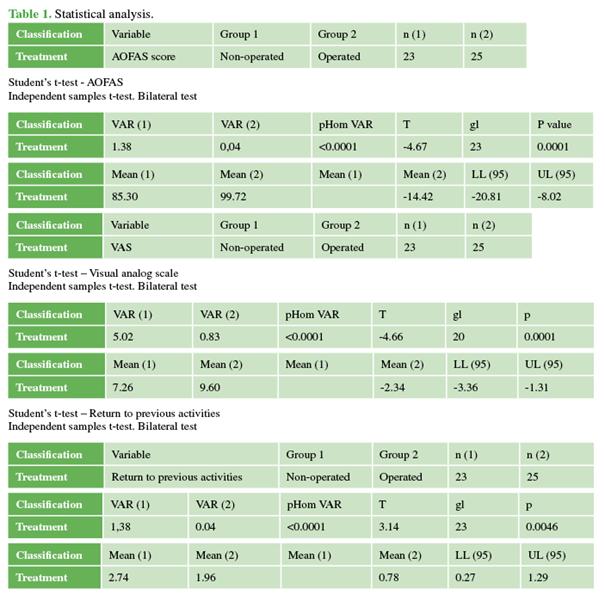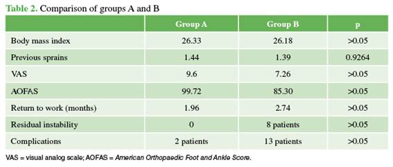 en la escala AOFAS. Otros resultados evaluados fueron: inestabilidad residual,