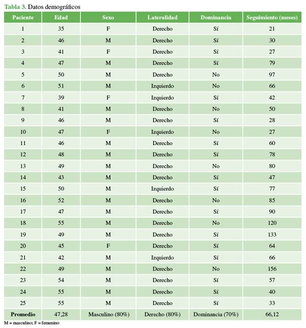 glenohumeral en todos los pacientes. Conclusiones: Con esta técnica quirúrgica hemos