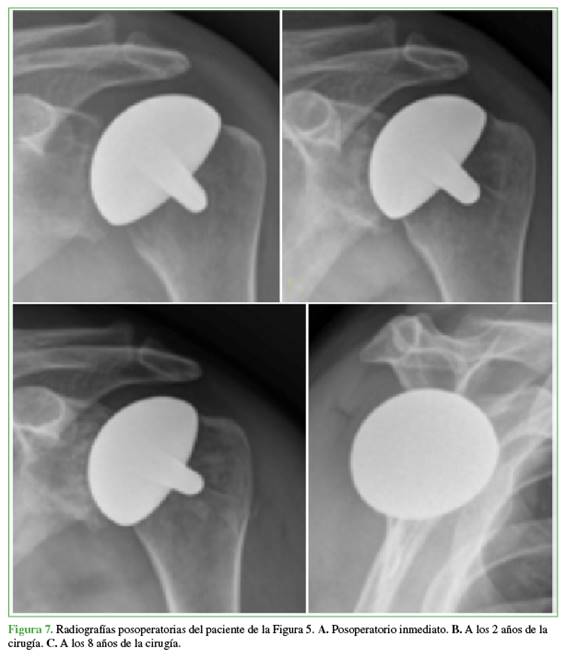 erosión del componente glenoideo a largo plazo y la frecuente reconversión a