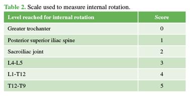 rotation with the arm at side from 25° to 55°; and internal rotation from 1.4