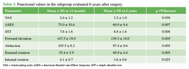 scores (VAS, ASES, and Simple Shoulder Test). In a subgroup of 10 patients, the