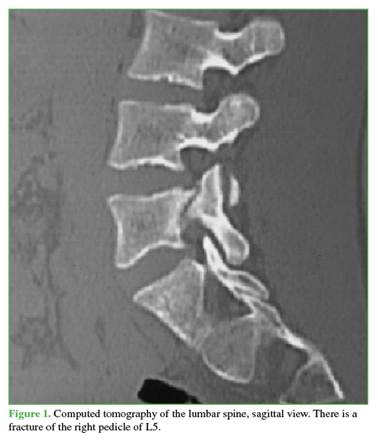 fracture of the lumbar pedicle in a young athlete. Spine (Phila Pa 1976) 2017;42(18):E1087-E1091.