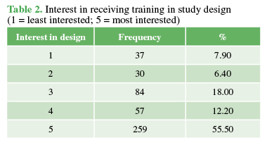training, the most common responses were related to study design, scientific