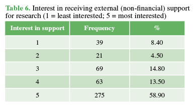 most frequently cited reasons were the lack of a research support group and the