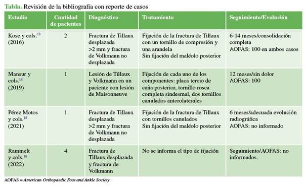 Tillaux en adultos. Equivalente bimaleolar inusual. Reporte de un caso. Rev Asoc Argent Ortop Traumatol