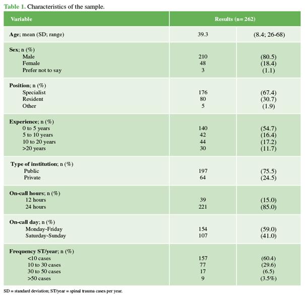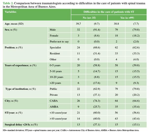 traumatologists working in emergency departments across Argentina. The