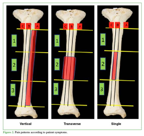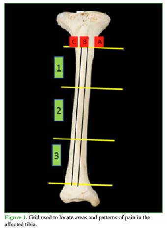 registraron los puntos dolorosos tibiales en una grilla con 9 zonas,