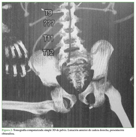 caracterizada por una luxación anterior en presentación obturadora (Figura 2), se descartaron lesiones asociadas.