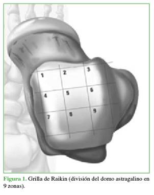 domo astragalino en 9 zonas o “grillas” para su mejor análisis terapéutico y