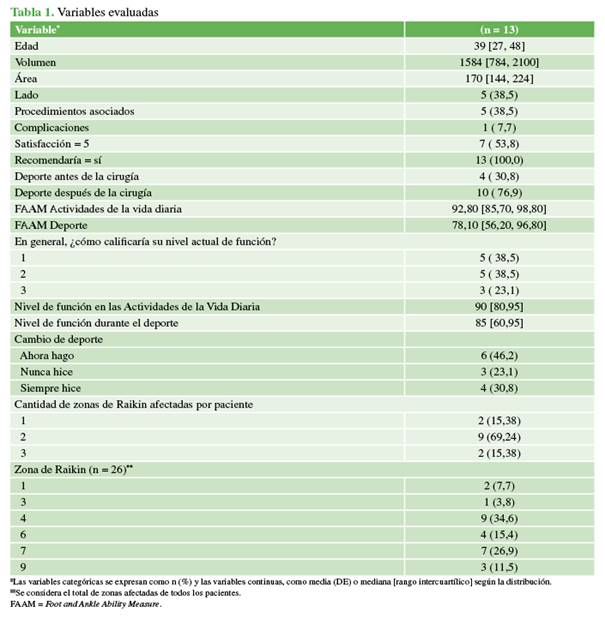 FAAM, la satisfacción del paciente y la capacidad de realizar actividad física. Resultados: La media del FAAM fue del 89% para las