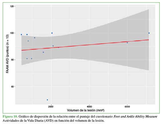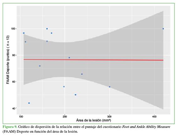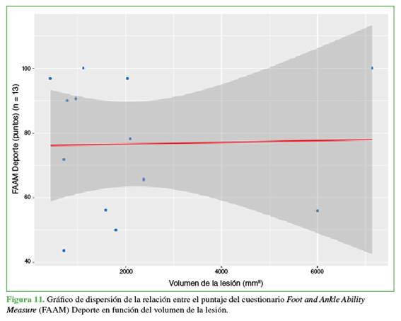 FAAM y el área, el volumen y la localización de las lesiones en el astrágalo. Conclusiones: El tratamiento artroscópico de las