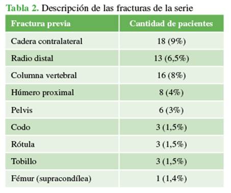 antecedentes de localización de fracturas por fragilidad. Resultados: Se incluyó a 200 pacientes (159 mujeres y 41 hombres, edad