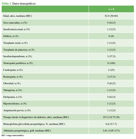 incluyó a 8 pacientes con un seguimiento de 58 meses (RIC 40.75-75.5). La HbA1c