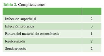 evaluaron la consolidación radiológica, las complicaciones y reoperaciones, el