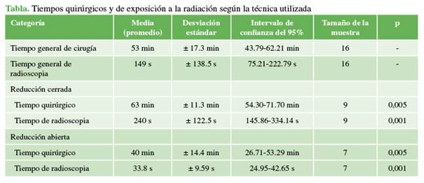 necesitaron reducción abierta, principalmente debido a retrasos superiores a 11