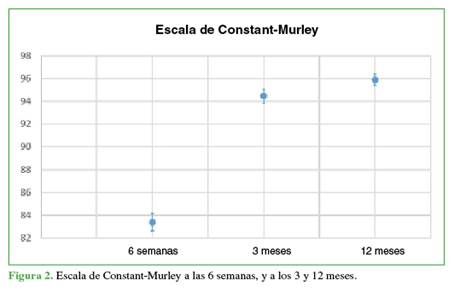 ocurrió en 6 semanas. El puntaje de la escala de Constant-Murley mejoró de