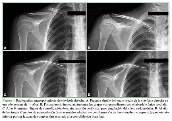 clavicular que habían sido tratados con clavos endomedulares flexibles y tenían