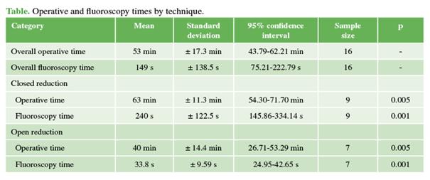 reduction had longer intraoperative radiation exposure times. Fracture union