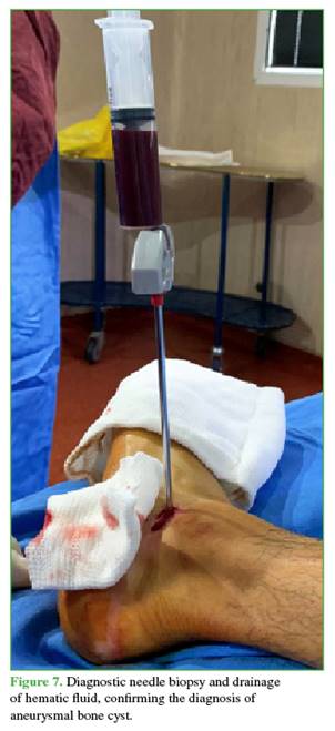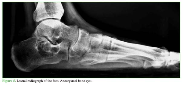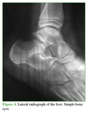 of a benign polylobulated calcaneal tumor included a simple bone cyst (Figure 4), an ABC (Figure