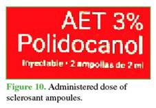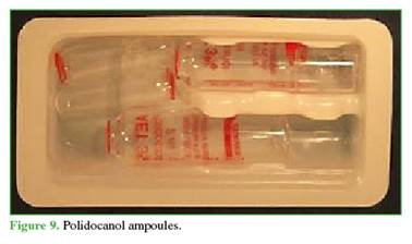 blood as possible, an ampoule of 3% polidocanol (a venous sclerosant) was