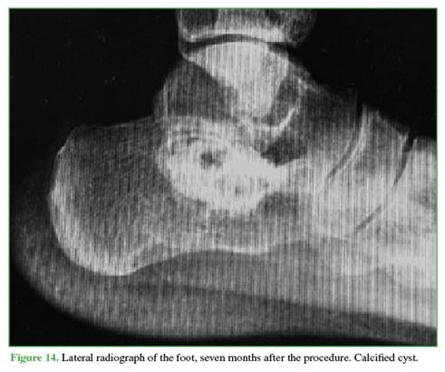 radiological follow-ups, cyst ossification and pain resolution were confirmed (Figures 13-15). After