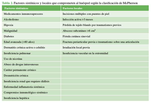 patógeno, el estado de los tejidos blandos, la gravedad de la infección, la