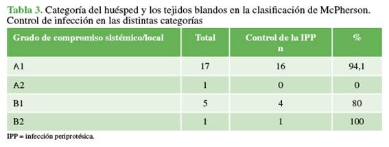 huésped) y el 91,6% tenía buenos tejidos blandos (tipo 1). En 22 pacientes, se