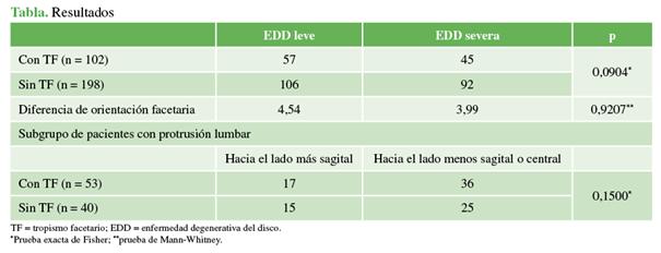 halló una asociación estadísticamente significativa entre el tropismo facetario