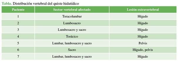 objetivo del estudio fue evaluar una serie de casos de hidatidosis vertebral