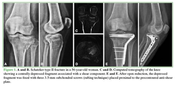 de la meseta tibial; fractura-depresión; técnica de rafting; aloinjerto óseo.