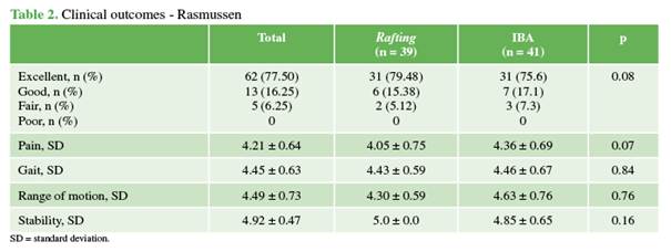 during follow-up. The Rasmussen clinical score was excellent or good in 93.75%