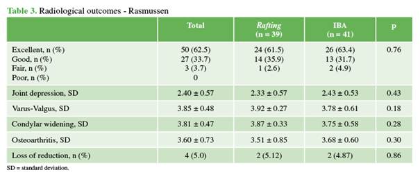 along with clinical and radiographic outcomes using the Rasmussen score and the