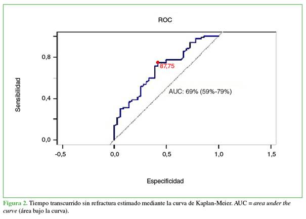 inferiores a la fractura, determinado a través de la curva ROC, muestra una