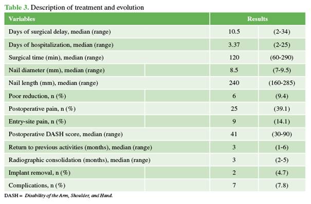 as a main early outcome of humeral shaft fractures: A Latin American