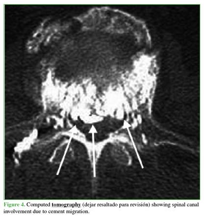 postoperative imaging ruled out cement leakage into the spinal canal (Figure 4).
