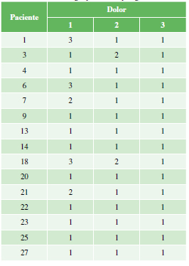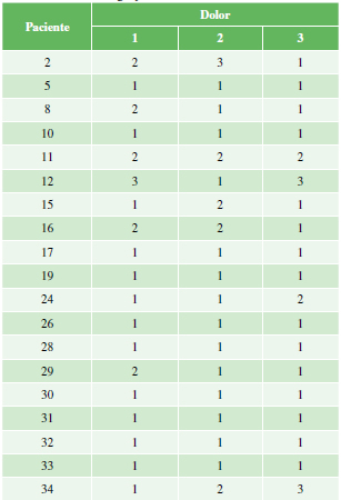 con un valor 3 en el segundo control. En el tercer control, 15 pacientes presentaron un valor 1; dos, un valor 2 y