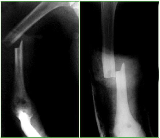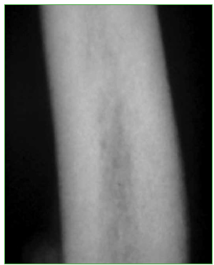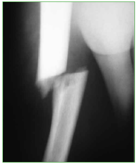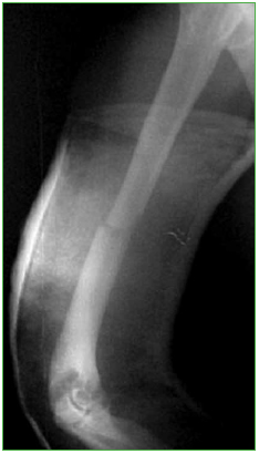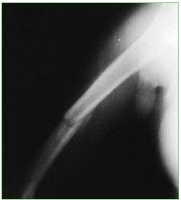 Figura 6. Radiografía de diáfisis del húmero derecho tomada el