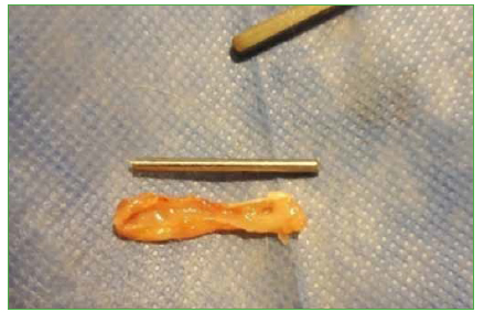 Figura 8. Membrana de Masquelet en clavija de acero.