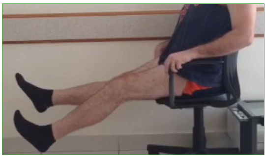 Figura 1. Imagen clínica donde se observa un déficit de extensión activa de 30° con respecto a la rodilla contralateral.