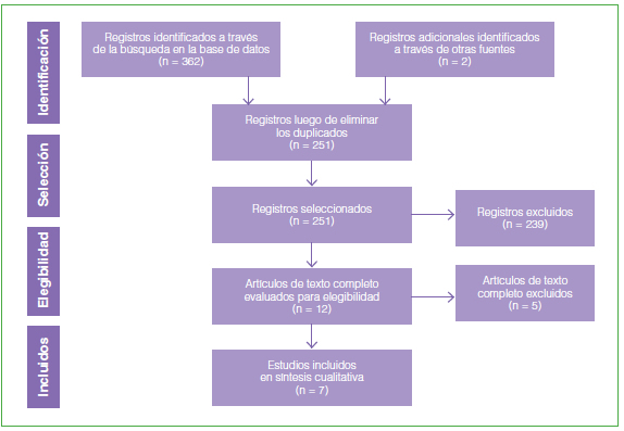 12 artículos para la revisión del texto completo. Luego de una revisión exhaustiva de estos artículos, siete cumplieron