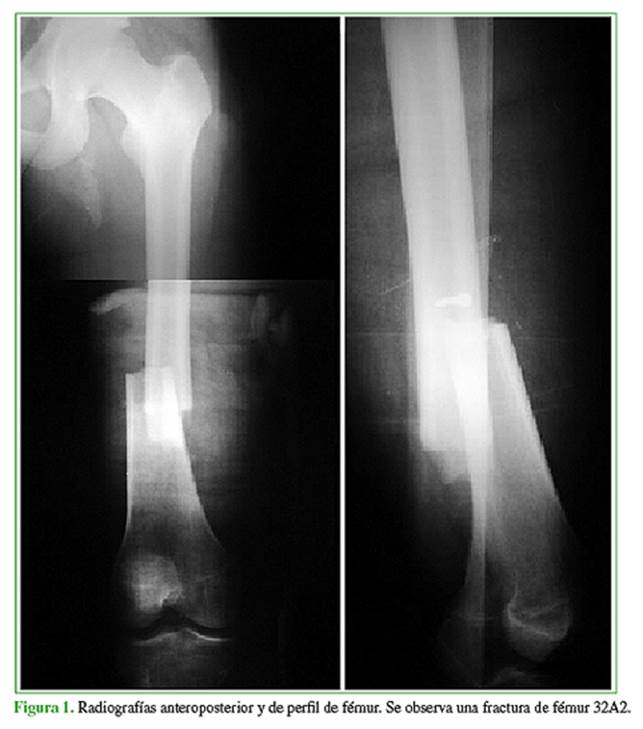 izquierdo y una fractura de fémur derecho, tipo 32A2 de la clasificación AO, asociadas